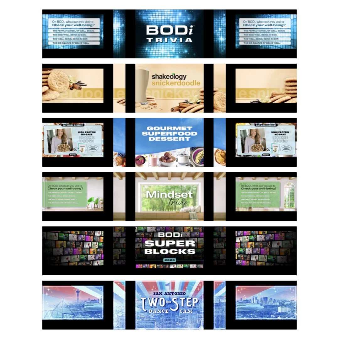 Dynamic and interactive screens for BODi Summit 2023, attended by 6,000+ people. These screens were strategically developed to engage the audience before the event began, enhancing the overall experience.
