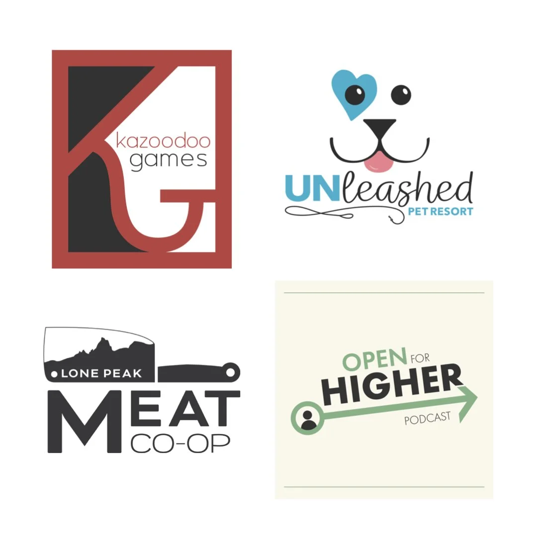 This selection showcases four logos from diverse projects, including a board game, a pet resort, a meat co-op, and a podcast. My designs blend compelling aesthetics with strategic alignment to each client's goals, enhancing brand appeal through creativity and precision.